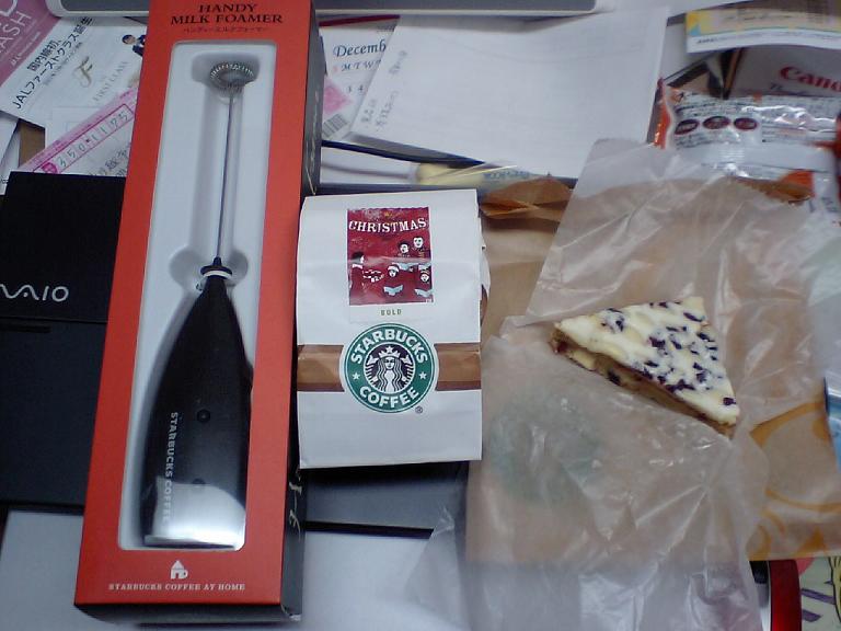 お土産は、ミルククリーマー、クリスマスブレンド100g(好みの挽き方で)、グランベリーブリスバー。